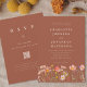 Boho chic floral Fall terracotta and beige wedding invitation with watercolor Wildflower Meadow hand painted flowers. This elegant terracotta and beige Wedding Invitation with RSVP wedding website QR code, a stunning blend of autumnal charm and elegant sophistication. This watercolor design showcases hand-painted wildflowers in a vibrant garden meadow, with a rich palette of sienna, taupe, clay, burnt orange, terracotta, brown, purple, yellow, coral, burnt umber, peach, and soft pink, capturing the warmth and beauty of the fall season on an elegant burnt orange terracotta background.