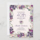 Beautiful boho-style 40th birthday party invitation for women with gorgeous purple and pink watercolor flowers and sage green leaves on a soft pink background.