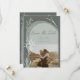 A modern rustic and boho desert, bold wedding save the date. All the text, names and background colours are customisable with 2 photos and rustic arch shaped photo with bohemianolive sage green. with editable floral dried pampas grass.