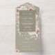 Boho Sage Green Rustic Floral with RSVP Wedding All In One Invitation