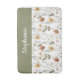 Boho Sage Green Watercolor Wildflower Monogram Bath Mat