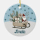 Boho Santa on Sleigh With Gifts Snowflakes Name Ceramic Ornament