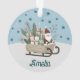 Boho Santa on Sleigh With Gifts Snowflakes Name Ornament