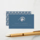This contemporary boho botanical wedding invitation enclosure card features a minimalist composition and simple typography in blue and white with a stylish floral pattern on the back.