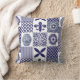 Modern shabby chic patterned cushion with sunflowers, gingers jars, fleur de lys and morrocan tiles in navy blue and white. On reverse are matching blue stripes with a monogram triangle, for you to add your own initial