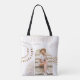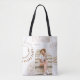 This trendy tote bag features modern neutral colours and boho rainbow geometric shapes. Personalised name is in a simple terracotta colour typography, and your personalise photo sits in a pretty arch frame!