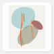 A boho inspired design of simples shapes and lines in rustic colours of brown, beige, and blue with orange highlights.