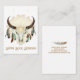 2 sided earring Jewellery Display Card/business card featuring a Boho Style cow skull with feathers hanging from the horns. This jewellery earring display card has hole markers that can be adjusted or deleted for placement of earrings. All text is customisable to increase/decrease size, social media can be added and the design can be enlarged/decreased in size.