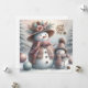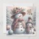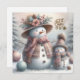 Defy the cold by sending a warm boho Christmas snow woman and child greeting. Snow woman is dressed in a pink, teal blue, and tan warm scarf and beautiful floral straw hat. Child has a similar colour knit hat and scarf. This greeting is sure to warm some hearts. Templates provided on back as well as a "Merry Christmas" on back.