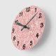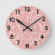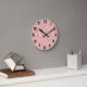 This wall clock has a Boho design of overlapping spirals in two shades of pink.