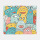 Boho-style cute monsters gather in this vibrant seamless pattern.