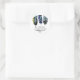 These round return address label stickers double as envelope seals and are perfect for sending out wedding invitations or other correspondence. They feature a boho style illustration of bird feathers in vibrant watercolor with your name and address below.