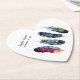 Add a special touch to your wedding reception with heart shaped coasters that are ready to be personalised with your names and wedding date. These coaster feature vibrant watercolor illustrations of bird feathers.
