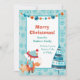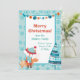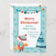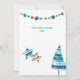 Here's a cute boho style Christmas card that is economical, too! The front features an adorable little red fox dressed in a winter hat and scarf, and holding a gingerbread pattern star. Near him is a boho style stripe and dotted blue Holiday tree. Your custom text is at the centre of a white rectangle framed with a blue snowflake pattern. At the very top is a string of decorative beads. The back of the card holds another custom text field, plus the bead string, the Holiday tree, and two pattern stars. Easily make it say whatever you'd like!