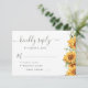 Rustic bohemian watercolor yeloow golden sunflowers and greenery chic script black and white wedding response kindly reply RSVP card.