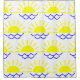 This shower curtain has a Boho design of half circles with lines to make a sun and scallops to make water.
