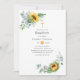 Bright sunflower and eucalyptus wild greenery themed baptism invite customisable to your event specifics.