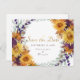 Beautiful watercolor sunflower and wild flowers with gold script Save the Date postcard.. Customise the information with your own wedding event details.