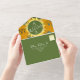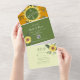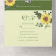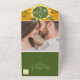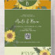 Elevate your celebration with this stunning all-in-one wedding invitation! Featuring a modern bohemian design, it beautifully blends vibrant sunflowers, warm orange and green tones, and a trendy handwritten script. Personalise it with a custom monogram, hand-drawn lovebird illustration, and your own photo on the back.
