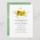 Trendy hand painted watercolor sunflower confirmation invitation with sage green watercolor wash background.