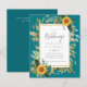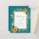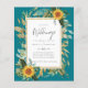 Beautiful watercolor yellow Sunflowers and sage green leaves and foliage feature on this country rustic boho themed wedding invitation.