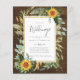 Beautiful watercolor yellow Sunflowers and sage green leaves and foliage feature on this country rustic boho themed wedding invitation.
