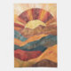 Boho Sunset Over Mountains -Retro Earthy Landscape Tea Towel