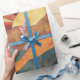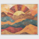 This boho sunset artwork wrapping paper features layered mountains in warm earthy tones of orange, red, and gold, with a radiant sunburst shining above the peaks. The retro-inspired design blends rustic textures with modern bohemian style, creating a bold yet calming landscape aesthetic. Perfect for nature lovers and free spirits, this design adds warmth and character to any space. A great gift idea for birthdays, housewarmings, and seasonal occasions, especially for those who love outdoor adventures, hiking, or boho-inspired decor.