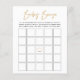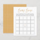 Boho script "Baby Bingo" graphic in rustic yellow with line art sun detail, baby shower game sheet with matching rustic yellow pattern backing.