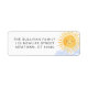 This sun-themed baby shower return address label features a cute yellow smiling sun, a blue cloud, and stylish typography.