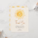 This sun-themed baby shower thank you card features a cute yellow smiling sun and stylish script typography on a cream background. The back is decorated with a sun pattern. Easily customisable. Original Watercolor © Michele Davies.