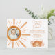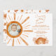 Celebrate your little sunshine's 2nd birthday with this boho gender neutral burn orange watercolor sun and rainbow, with heart and flowers rainbow invite , with a cute rainbow, sun and flowers pattern at the back. Perfect gender neutral baby 2nd birthday! Add your baby's photo in the heart of the sun