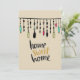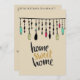 Boho style hand drawn tassels with "home sweet home" in modern script on beige background.