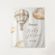 Transform your space into a whimsical haven with our Boho Baby Shower Backdrop. Crafted in elegant shades of beige to white, it features an adorable bear in a hot air balloon, encircled by fluffy clouds. The customisable inscription adds a personal touch, awaiting your creativity. Immerse yourself in an ambiance of sweetness, wanderlust, and optimism. Tailored for future mothers, this backdrop encapsulates love and joy, as you embark on a journey of enchantment. Let the adventure unfold in this magical celebration!
