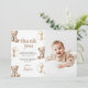 Boho Teddy Bear Beary First 1st Birthday Photo Thank You Card