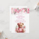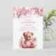 Boho Teddy Bear Girl Pink Bear Floral Birthday Invitation