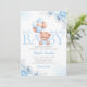 modern elegant cute Boho Blue Watercolor Floral Teddy Bear Baby Shower Invitation