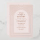 A unique design with multiple delicate arch lines surrounding your wedding invitation information in rose gold foil stamped, over an blush / soft pink with all text in terracotta. On the back add your wedding details and rsvp information.
