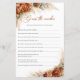 Boho terracotta burgundy pampas Guess The Number bridal shower game,