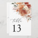 Boho Terracotta Dahlia Rose Wedding Table Number