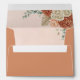 Complete your classic wedding stationery suite with a boho terracotta envelope. Burnt orange hydrangea, peach peonies, ivory ranunculus flowers, pampas grass, fan palms and eucalyptus cascade across the inside. It provides the perfect modern touch for couples mailing out late summer or fall wedding invitations. Perfect for botanical themes or romantic bohemian aesthetics.