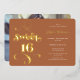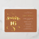 Boho terracotta retro script photo Sweet 16 birthday party invitation with real gold foil.