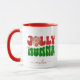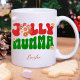 Retro groovy typography customisable script coffee mug for moms. The design features the text "Jolly Mumma" in red and green retro groovy typography with cute boho-themed flowers. The name can be easily customised. Makes for the best personalised gift for yourself, your friends, family members and even neighbours. We have 45+ more Christmas mugs in retro design, watercolor and funny typography-based in our collection that you will definitely love. Merry Christmas!