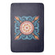 An intricate boho-inspired tile design in blue, red, and warm earth tones. Designed for a vintage-meets-modern look, ideal for coasters, wall art, bedding and other modern look products.
