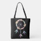 Boho Tote Bag in Black with Dream Catcher Image