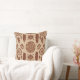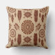 A seamless boho tribal-inspired pattern throw pillow featuring feathers, geometric sunbursts, and circular motifs in warm brown and beige tones. Perfect for rustic home decor, bohemian gifts, and all-season creative designs.