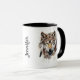 Native American inspired Wolf Mug that embodies the Spirit of the Wild. It features a Majestic Wolf wearing a Native American Head Dress with Feathers. Whether a thoughtful gift or a cherished addition to your collection, this Nature Lovers Wolf Mug invites you to embrace the Wisdom and Spirit of the Wolf with every use. Perfect for Guys or Gals. Personalise this Wolf Mug by Adding Your Own Name!