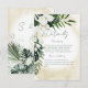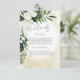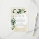 This wedding details card design features beautiful, lush tropic greenery and white florals on a soft yellow sand watercolor background. Perfect for the destination or beach wedding. Created by Simply Farmhouse Press.