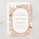 This boho tropical botanical | couples shower invitation is perfect for your elegant rustic floral, green, peach, rose gold couples shower. Design features a gold frame or bouquet with modern blush pink pampas grass, simple sage, ivory, champagne palm leaf, and classic beach greenery. The flowers may include pink rose and orchid. The design is ideal for a classy vintage terracotta, beige, rust, winter, spring, fall wedding. Please find other matching or coordinating wedding stationery in the rest of the collection suite.
