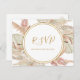 This boho tropical botanical | song request RSVP postcard is perfect for your elegant rustic floral, green, peach, rose gold wedding. Design features a gold frame or bouquet with modern blush pink pampas grass, simple sage, ivory, champagne palm leaf, and classic beach greenery. The flowers may include pink rose and orchid. The design is ideal for a classy vintage terracotta, beige, rust, winter, spring, fall wedding. Please find other matching or coordinating wedding stationery in the rest of the collection suite.